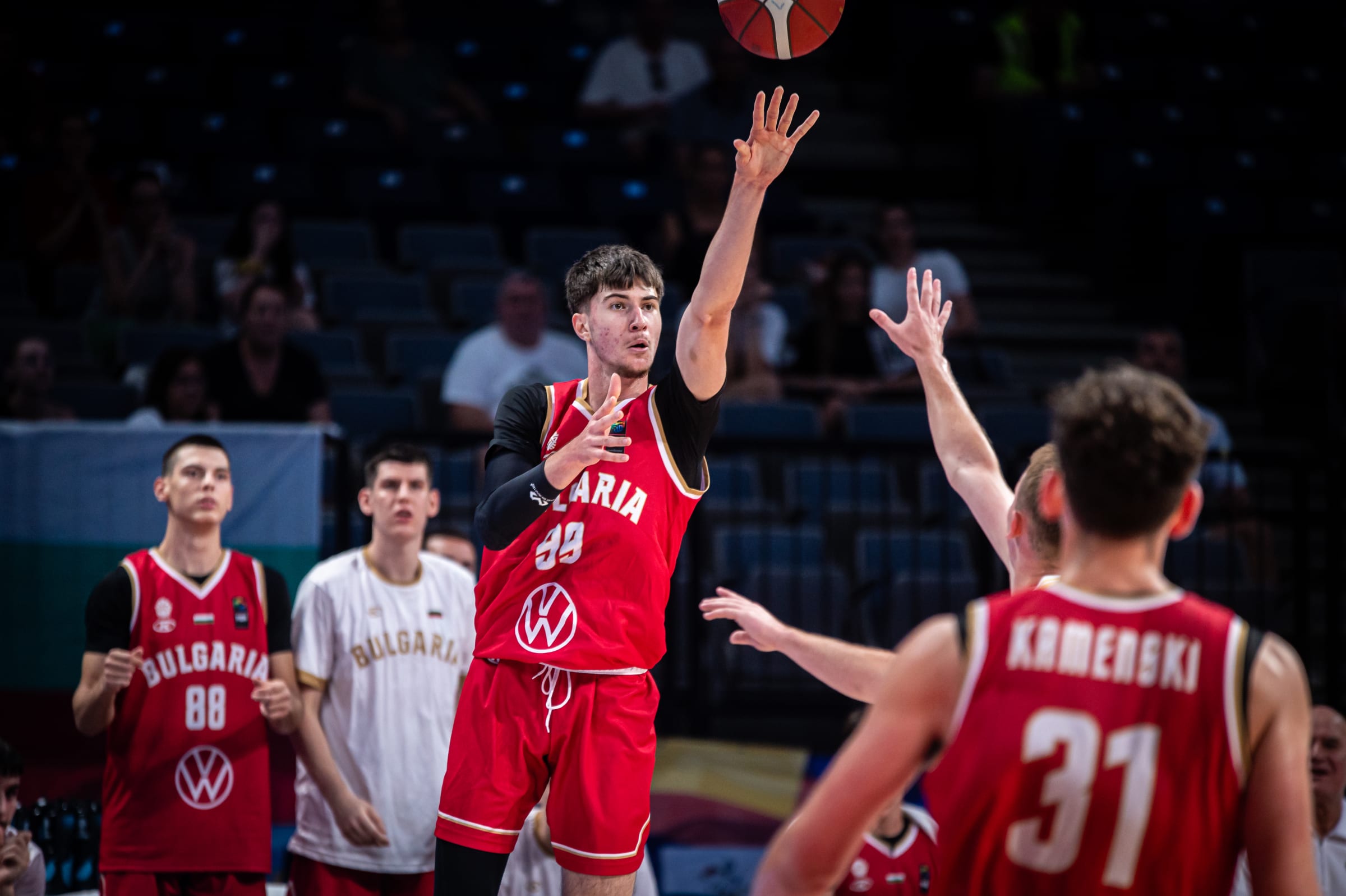 През миналото лято Калоян Балканджиев бе в състава и на юношеския ни национален отбор, който участва на европейското в Сърбия. В общо 7 мача талантът записва средно по 12.4 точки, 6.9 борби и 1.3 асистенции за представителния ни тим при 18-годишните в Белград.