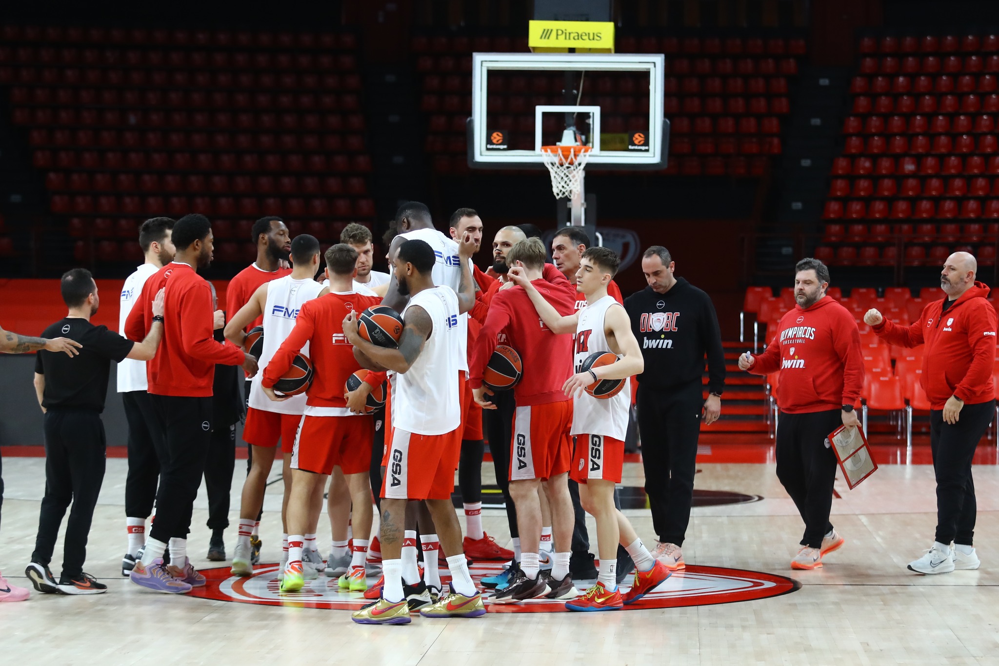 Информацията е на журналиста Матео Андреани, който съобщава, че по време на ремонтните дейности тимът на Александър Везенков ще търси временно решение за домакинствата си. Един от обсъжданите варианти е Спортният комплекс в Ираклион, на остров Крит. Очаква се окончателното решение за новата зала да бъде взето в близко бъдеще.
