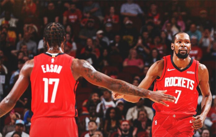 НАЙ-ДОБРИ: Кевин Дюрант завърши с 26 точки и 6 борби за Хюстън. Алперен Шенгун добави 22, 7 борби и 5 асистенции. Амин Томпсън и Рийд Шепърд се разписаха с по 16 точки и 6 борби.